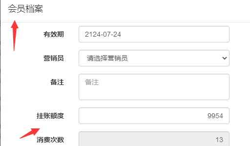需要在会员资料中设置挂账额度,额度不足就不能挂账,如图: