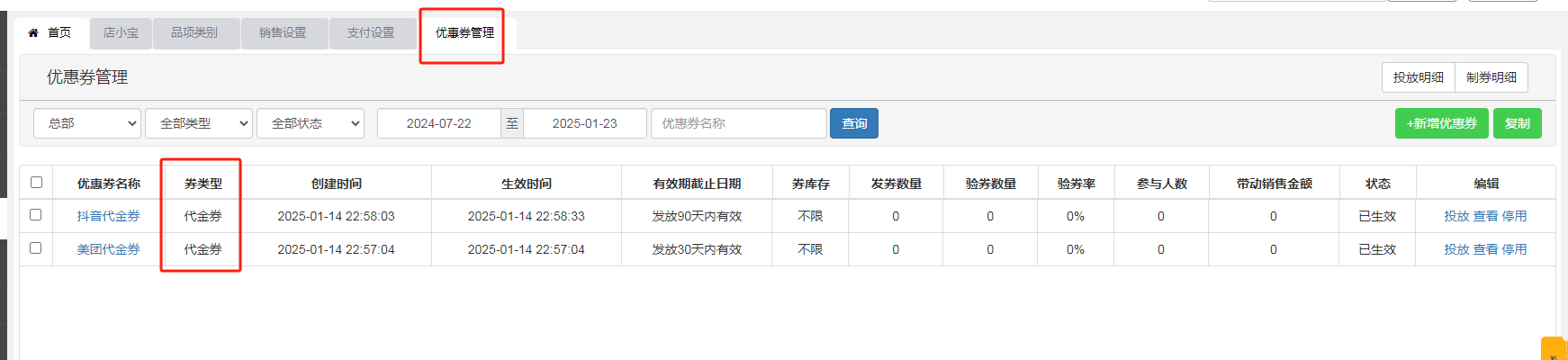 品类代金券支付的参数,只限制优惠券管理里的代金券,客户使用的是支付设置里自定义支付方式的代金券,这个不在限制范围内。