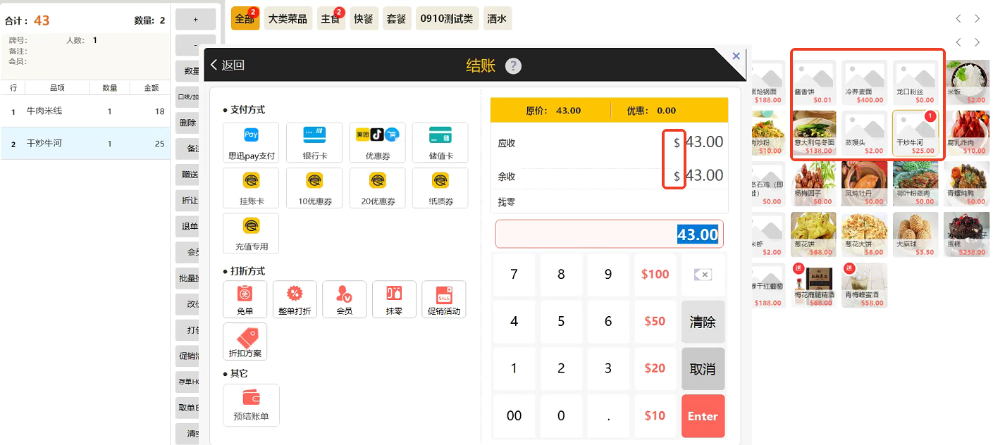 设置完成后,结算界面 和小票界面将对应呈现 符号。